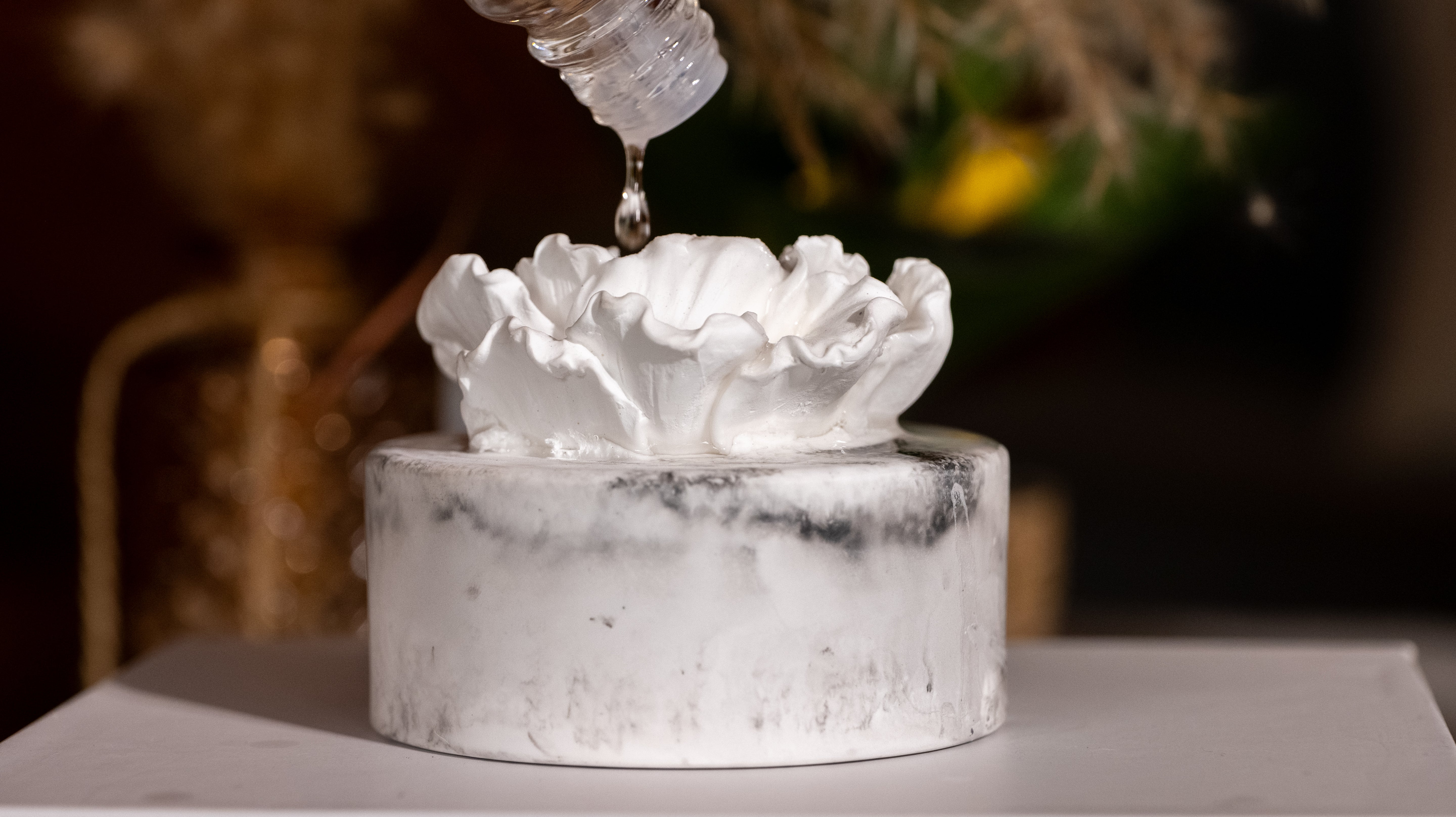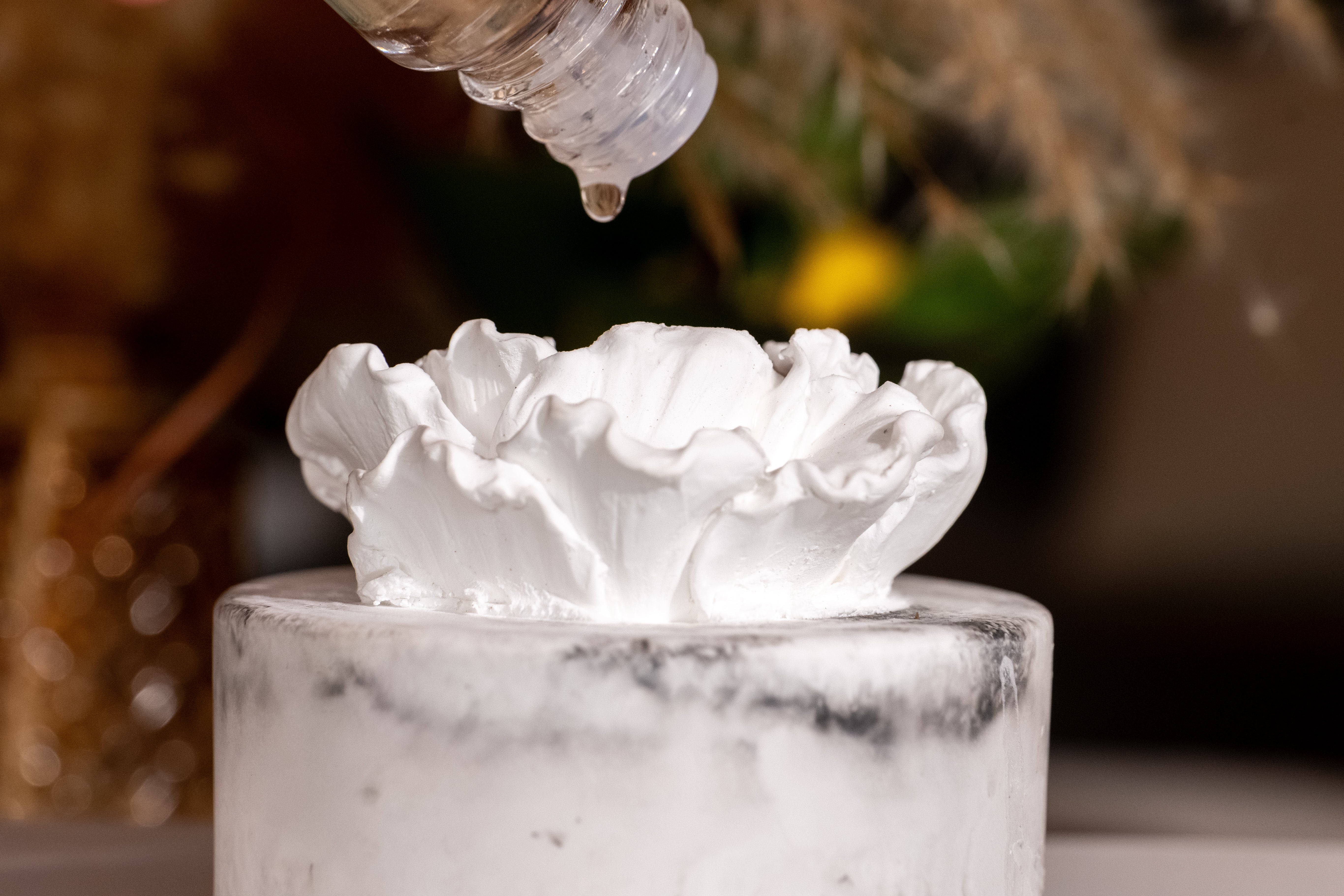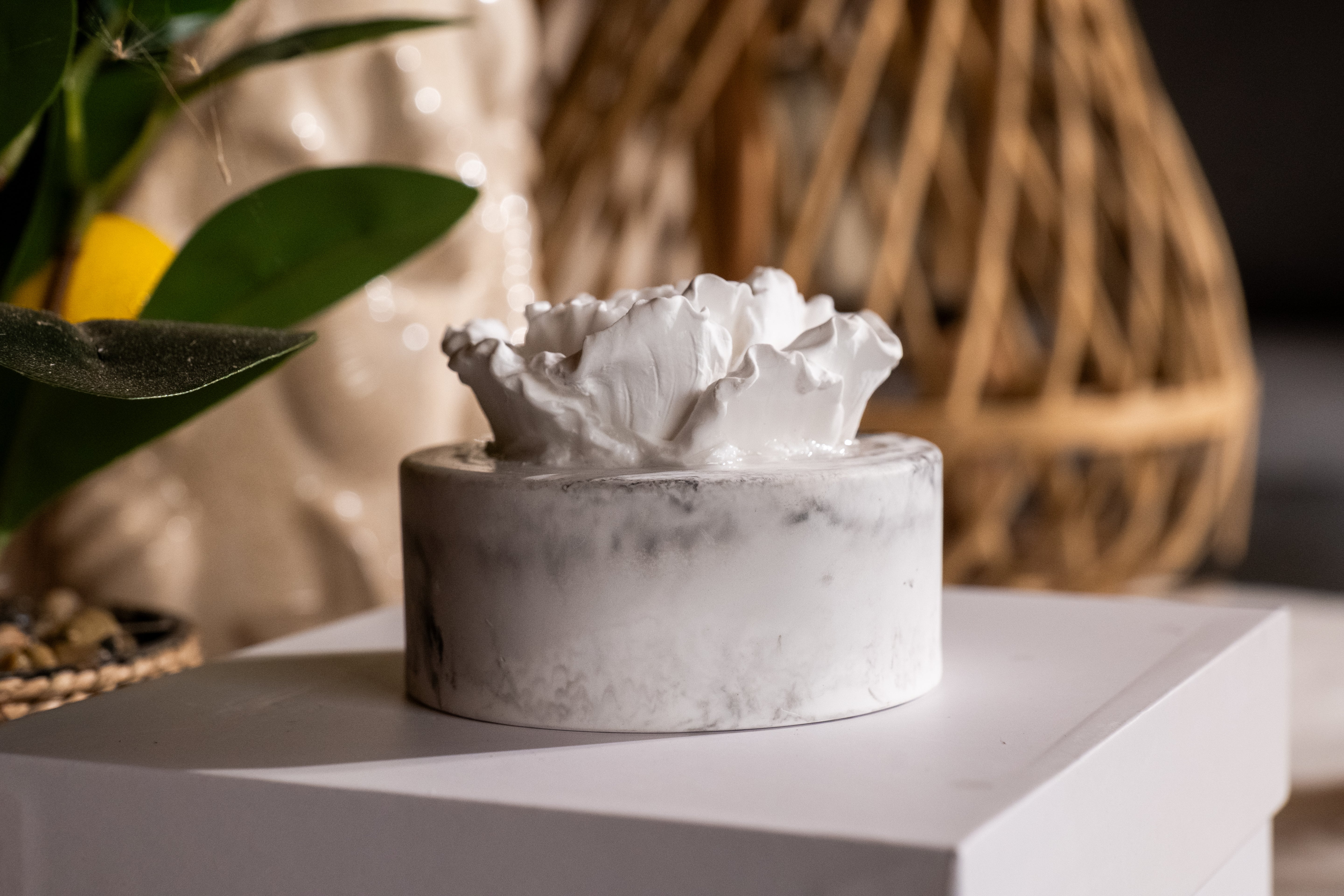 Onze handgemaakte geursteen diffuser werkt zonder vuur of stroom . Alleen geur, vorm en stilte. De bloemvormige steen absorbeert etherische olie en verspreidt die geleidelijk in je ruimte. Zacht. Zintuiglijk. Intiem.